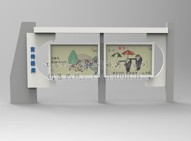 公司技術(shù)力量雄厚,工藝流程科學(xué),質(zhì)量檢測體系完善,采用較好的原材料,嚴(yán)把質(zhì)量關(guān),本著“誠信為本、務(wù)實創(chuàng)新、客戶至上”的經(jīng)營理念頑強拼搏,銳意進取,握準(zhǔn)時代脈搏,產(chǎn)品不斷競進提質(zhì)、推陳出新。產(chǎn)品銷售二百多個多個城市,我公司還可根據(jù)客戶的要求,訂做生產(chǎn)不同規(guī)格的款式宣傳欄,公交候車亭,法治宣傳欄,消防宣傳欄,部隊宣傳欄,校園文化宣傳欄等。目前與國內(nèi)眾多政府單位、部隊、廣告公司建立了長期穩(wěn)定的合作關(guān)系,并得到了客戶的高度認(rèn)可。我們不僅僅為客戶提供高質(zhì)量的產(chǎn)品,更有新穎的創(chuàng)意和較好的售后服務(wù),贏得了廣大新老客戶的一致好評。