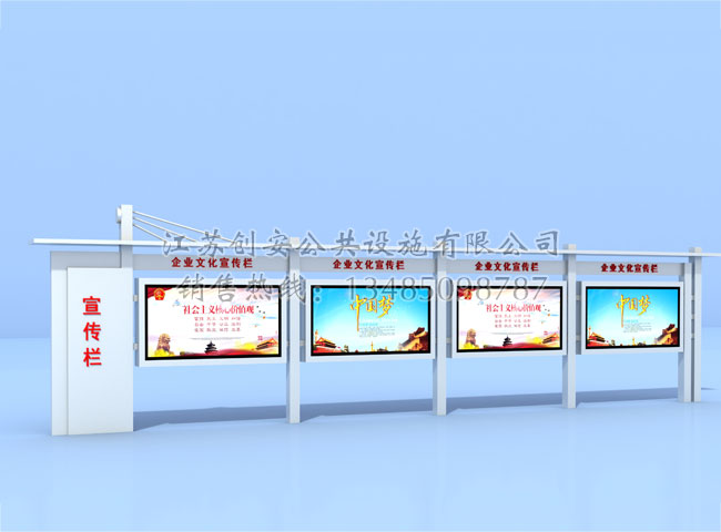 宣傳欄廠家-江蘇創(chuàng)安公共設(shè)施有限公司是一家國內(nèi)知名的專業(yè)從事宣傳欄,公交候車亭,精神堡壘,法治宣傳欄,消防宣傳欄,部隊宣傳欄,校園文化宣傳欄整體規(guī)劃、設(shè)計、生產(chǎn)制作、安裝、售后服務(wù)及產(chǎn)品研發(fā)于一體的宣傳欄制造有限公司。